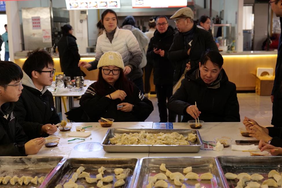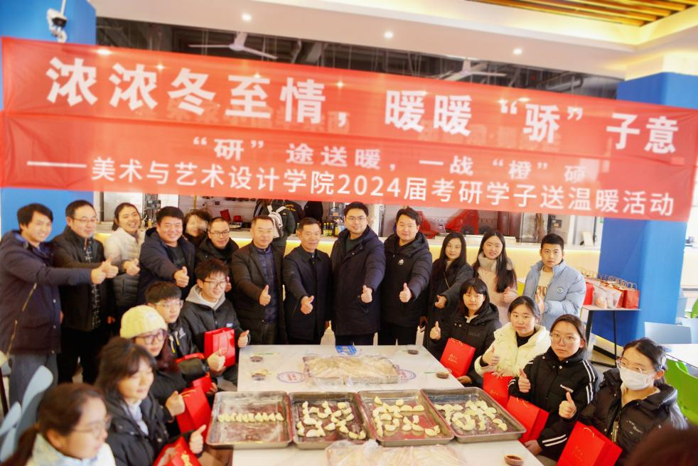 本网讯(通讯员唐天田)暖心过冬至,美院传温情。12月22日中午,“冬至遇上考研”,8868官方网站美术与艺术设计学院举办了一场别样的活动。校党委委员、副校长李常健,校党委委员、副校长吴小林,校团委书记万李,美术与艺术设计学院全体领导,毕业班班主任老师和辅导员老师,团学干部们一起为考研学子“包饺子”送祝福。