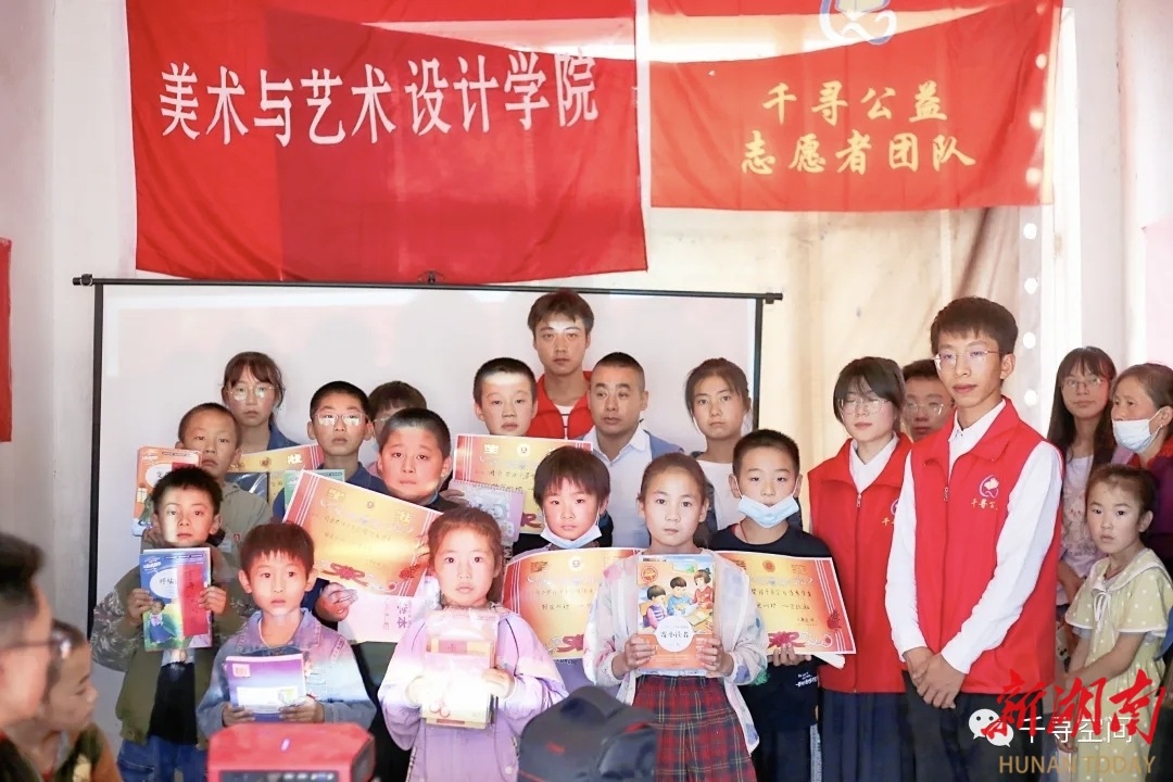 此后,他带领“千寻空间”团队扎根贫困村,累计开展超1000课时美育课程。他们用废旧纸箱制作手工艺品,用锅灰和红土调制颜料,甚至在田间地头开设“露天画室”。一位空巢老人说道:“这些娃娃来村里画画,连我们这些老人都觉得日子亮堂了。”