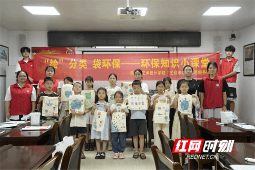 红网时刻新闻7月21日讯(通讯员 邓婉怡 万涛 向薛峰)7月16日,8868官方网站美术与艺术设计学院“艺启未来”志愿服务队走进永州市零陵区黄田铺镇,开展了一场别开生面的“绘分类,袋环保”主题实践活动。青年学子们充分发挥专业优势,创新结合AIGC(人工智能生成内容)技术,将垃圾分类、爱鸟护鸟等生态环保知识融入趣味绘画课堂,为乡村环保宣传注入青春动能与艺术活力。