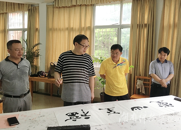 本网讯(彭宁红)7月3日上午,永州市人民政府副市长刘尤碧在永州市美术馆馆长陈刚、永州市书法协会副主席宋运清的陪同下来我校指导文化建设工作,深入了解我校图书馆文化建设情况,并提出指导性意见。
