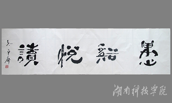 现场,刘尤碧挥毫泼墨,创作出精美雅致的书法作品10余幅,赠送给图书馆,还欣然为学校2016年第十届读书节活动征文集题写书名“愚溪悦读”。