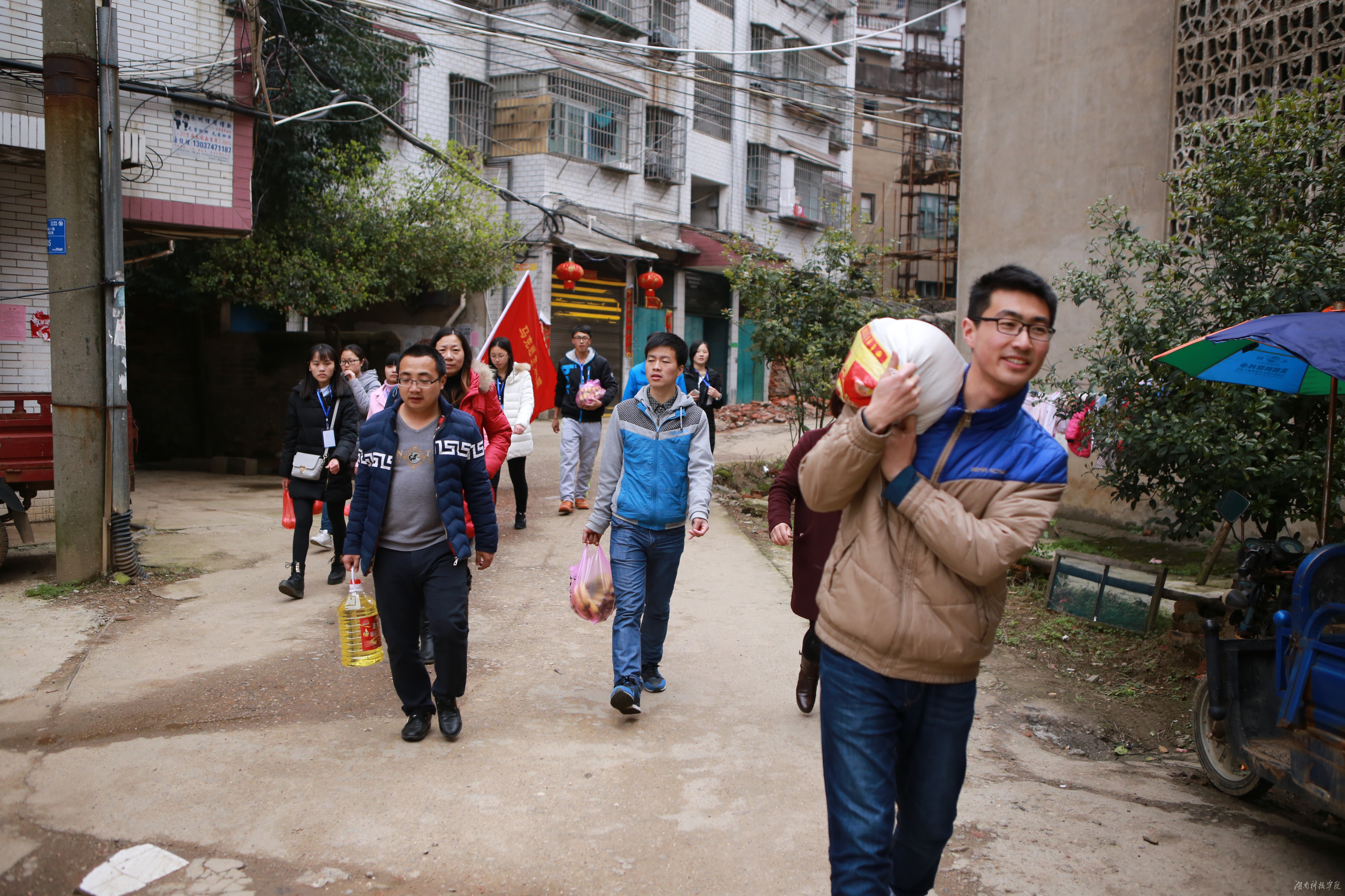 志愿者送去了大米、食用油等慰问品