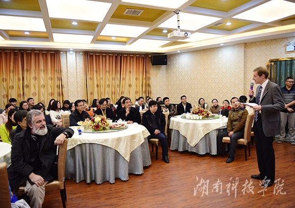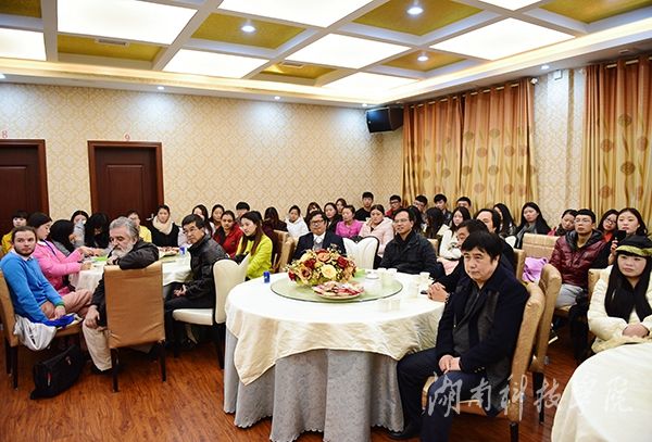 本网讯(记者 李月红 实习记者 李瑞雪)12月10日晚,德籍外教恩斯特在山水绿多功能厅举办音乐与创意学术沙龙。校党委书记陈弘等领导兴致勃勃地与师生们走进他多彩的音乐世界。