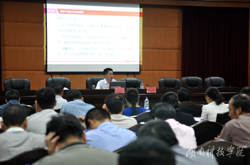 曾宝成从提升干部执行力的重要性、我校干部执行力存在的突出问题及提高我校干部执行力的途径三个层面进行了透彻分析和认真解读。他从理论和实际结合的高度,列举了大量详实的事例,论证了执行力和提高工作效能的关系,深入分析了执行过程中各级领导所担负的责任和存在的问题,对如何提高领导干部执行力提出了要求。