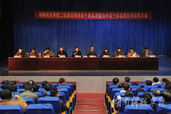 本网讯(记者 乐为 摄影 何帅文)1月17日上午,学校二级单位领导班子换届调整和中层干部选拔任用工作动员大会在音乐楼演播厅举行。校党委书记陈弘作动员讲话,校党委副书记唐艳明就《8868官方网站二级单位领导班子换届调整和中层干部选拔任用实施方案》进行了全面解读。会议由校长曾宝成主持。