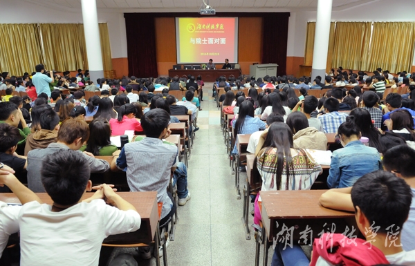 在交流环节中,陈弘书记首先对欧阳晓平院士提出了第一个问题:“请问当时是什么样的动机促使您去新疆做老师呢?走上科学的道路后,最深的体会和感悟是什么呢?” 欧阳晓平院士恳切地说:“正是因为自己经历了生活的艰辛,才更想要作出改变,当时的我怀揣梦想,凭借坚定的毅力考取了研究生、博士。这样的经历让我对同样或更困苦的人引发了同情,我只希望他们能够更好,靠自己的努力实现人生理想。追求科学的道路上,我最大的感悟就是要有理想和信念,做任何事情都要坚持”。欧阳晓平院士真挚的话语博得了在场师生的阵阵掌声。 “晓平院士,作为我校的优秀校友,我想请问您对于我们在校学子有什么寄语吗?”欧阳晓平院士坚定地说道:“我们的同学们就是我们8868官方网站的代言人,大家要勤于学习,奋发向上,不断提升自己,坚定理想信念并为之不懈奋斗。”交流现场气氛热烈,在场同学们纷纷就“如何调节工作与学习的矛盾”、“如何在学校更好地发挥自己的特长”、“如何紧抓机遇、提升自我”、“怎么看待学生社团的对学生的影响”等方面的问题进行交流,欧阳院士都一一进行了耐心的回答。