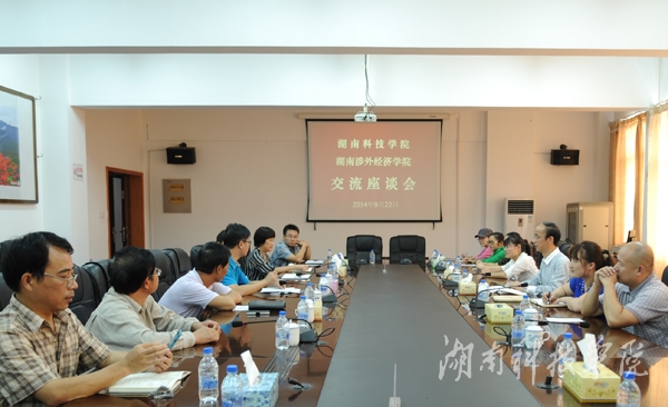 本网讯(记者 李瑛)9月22日下午,湖南涉外经济学院思政部主任李故新一行7人来我校调研交流思想政治教育工作,校纪委书记彭立威率相关职能部门负责人在行政楼六楼会议室与来访客人进行了座谈交流。