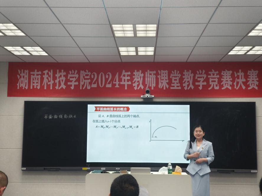 在教学竞赛中,参赛老师分别围绕自己教学内容进行了教学设计汇报。理工组王梦丹老师在《平面曲线的弧长》的教学中融入思政元素,以“二万五千里”长征路如何计算作为课程导入,引出平面曲线弧长的概念,采用“启发式”和“互动式”的教学模式,通过典型例题讲解,引导学生学以致用,每一代人都要走好自己的长征路,享受数学,启迪智慧。