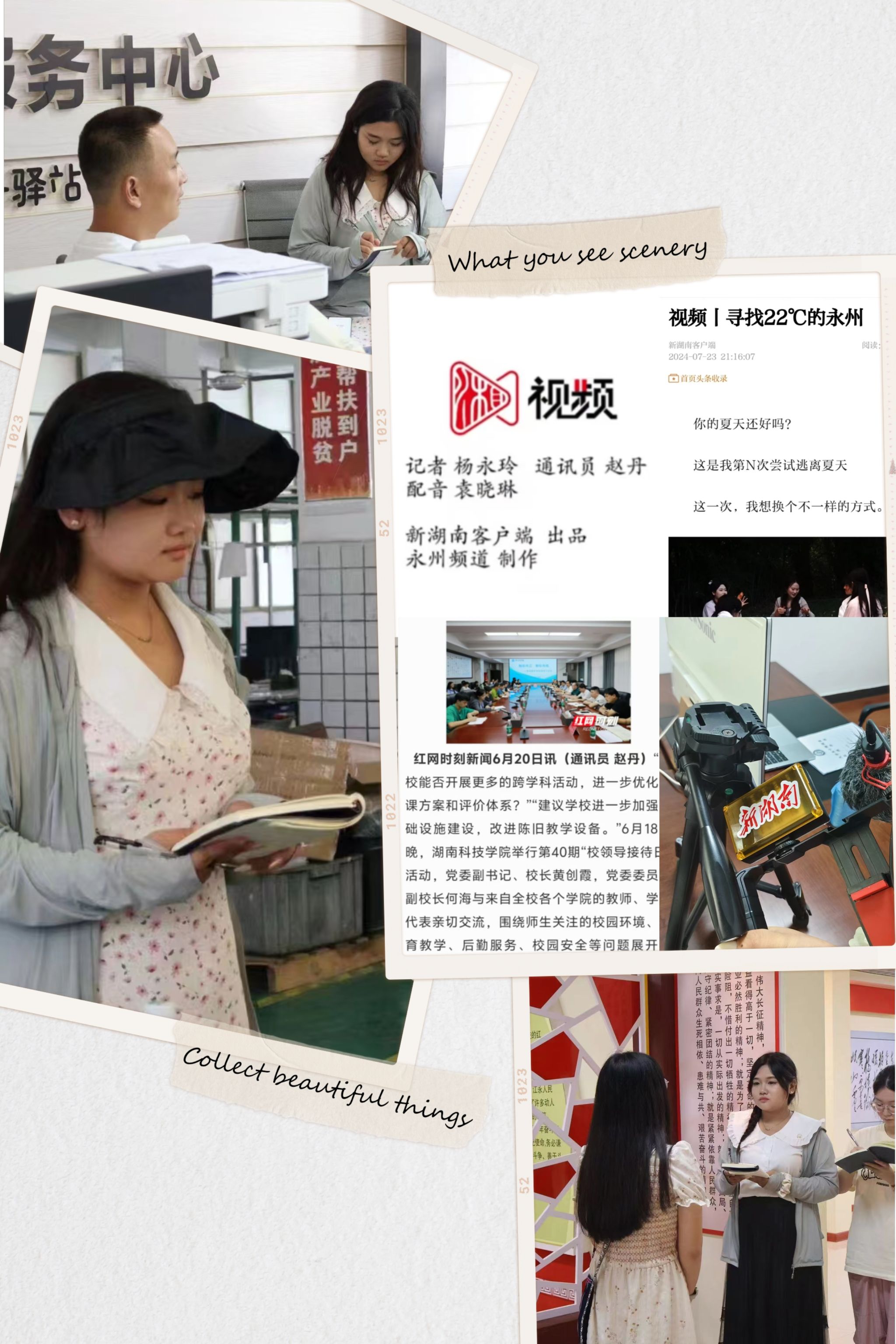 大学第三年,我在校园新闻网站发表了61篇文章,在新湖南、红网等省级媒体发表了70余篇新闻。从会议新闻到现场报道,我深刻体会到新闻不仅是记录,更是现场的真实呈现。记者的荣耀在于每篇报道展现的真实价值。在校领导接待日上,我见证了校领导对学生问题的认真回应。在湖南日报实习时,我感受到记者们对新闻的严谨态度。负责千家峒红色文化精神采访时,我被当地传播红色文化的热情所感动。我坚信,拥抱变化,坚守内心,才能不负梦想与使命!希望每个怀揣新闻梦想的人都能实现自己的梦想。