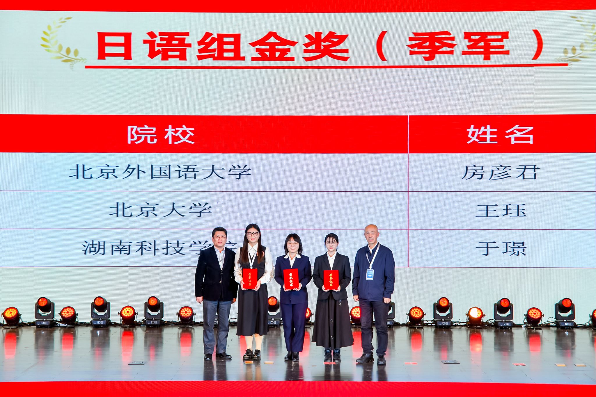 本次大赛分校赛、省赛和国赛多轮制进行。其中省赛由湖南省教育厅主办,共有来自18所院校的71名本科和研究生选手参加,分为线下的定题演讲和即兴演讲以及线上的包含阅读、笔译和写作在内的综合能力考试,于璟同学以综合能力测试全省第一、总分第二的优异成绩代表湖南省参加国赛第一轮。全国共有来自200多所高校的217名选手进入国赛第一轮。该轮比赛在线上进行,包含汉日口译、定题演讲和回答问题三项,湖南省仅有湖南大学、8868官方网站和中南大学的三名学子(全国60名)进入国赛第二轮,参与金银奖的角逐。最终,我校学子于璟在全国总决赛中获得金奖。