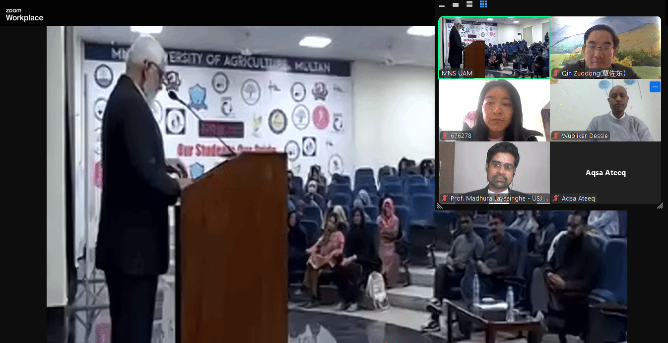 本网讯(通讯员 汪美凤)2月12日,由巴基斯坦Muhammad Nawaz Shareef University of Agriculture联合我校组织发起的“Innovative Technologies in Food and Nutrition: Trends and opportunities”(食品与营养创新技术:趋势与机遇)国际研讨会在巴基斯坦木尔坦以线上线下相结合的方式成功召开。来自巴基斯坦、中国、斯里兰卡等国家和地区的百余名专家学者出席了本次研讨会,共同探索食品营养的最新技术与未来发展趋势。