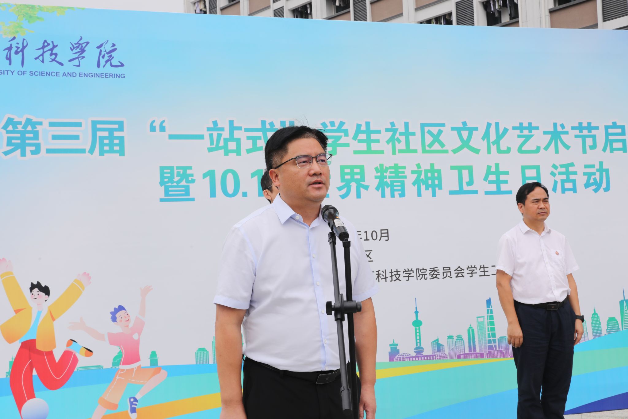 李钢宣布学校第三届“一站式”学生社区文化艺术节暨10.10世界精神卫生日活动正式启动。