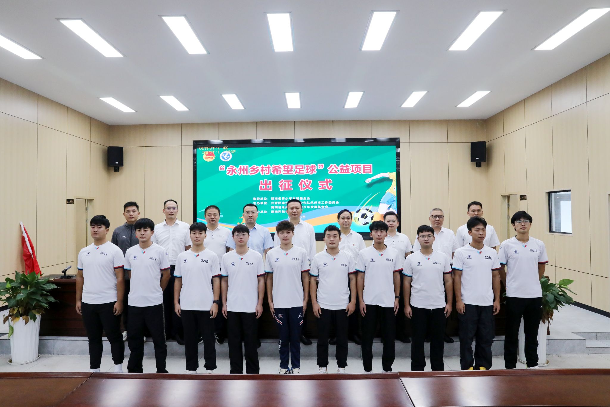 “永州乡村希望足球”公益项目由共青团永州市委、永州市少工委、永州市青基会联合发起,由我校体育学院提供技术支持,由市青基会提供专项经费保障,由项目承接县市区配合实施。据悉,项目第一期承接县为新田县,体育学院选派的10名足球专业大学生志愿者将入驻新田县10所乡村小学开展为期2个月的支教活动,为支教学校带训出一支少年足球队,并在支教结束后协助县区组织10所支教学校举办一轮足球联赛。
