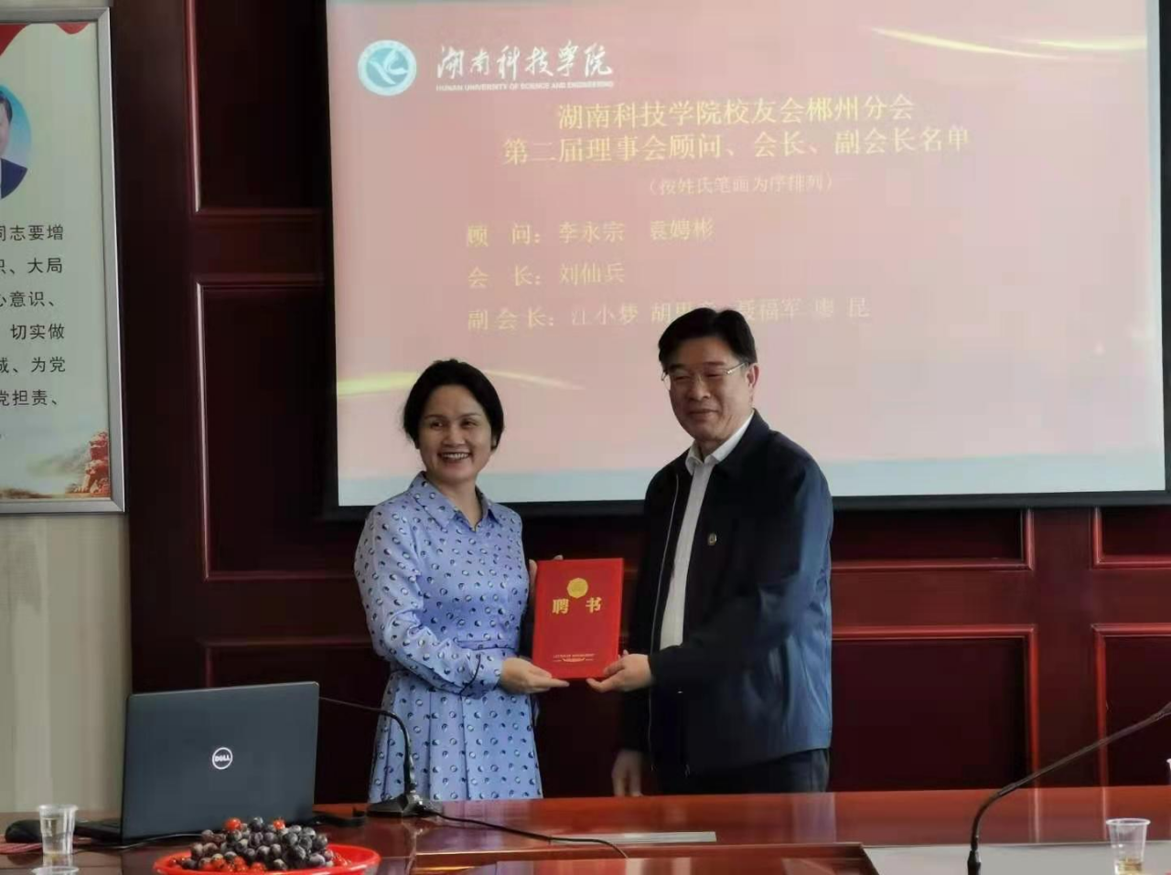 22日上午,学校校友会郴州分会第二次会员代表大会在郴州市召开,大会选举产生了郴州校友分会第二届理事会。李永忠、袁娉彬当选为顾问,刘仙兵为会长,江小梦、胡思意、聂福军、廖昆为副会长,聂福军兼任秘书长。
