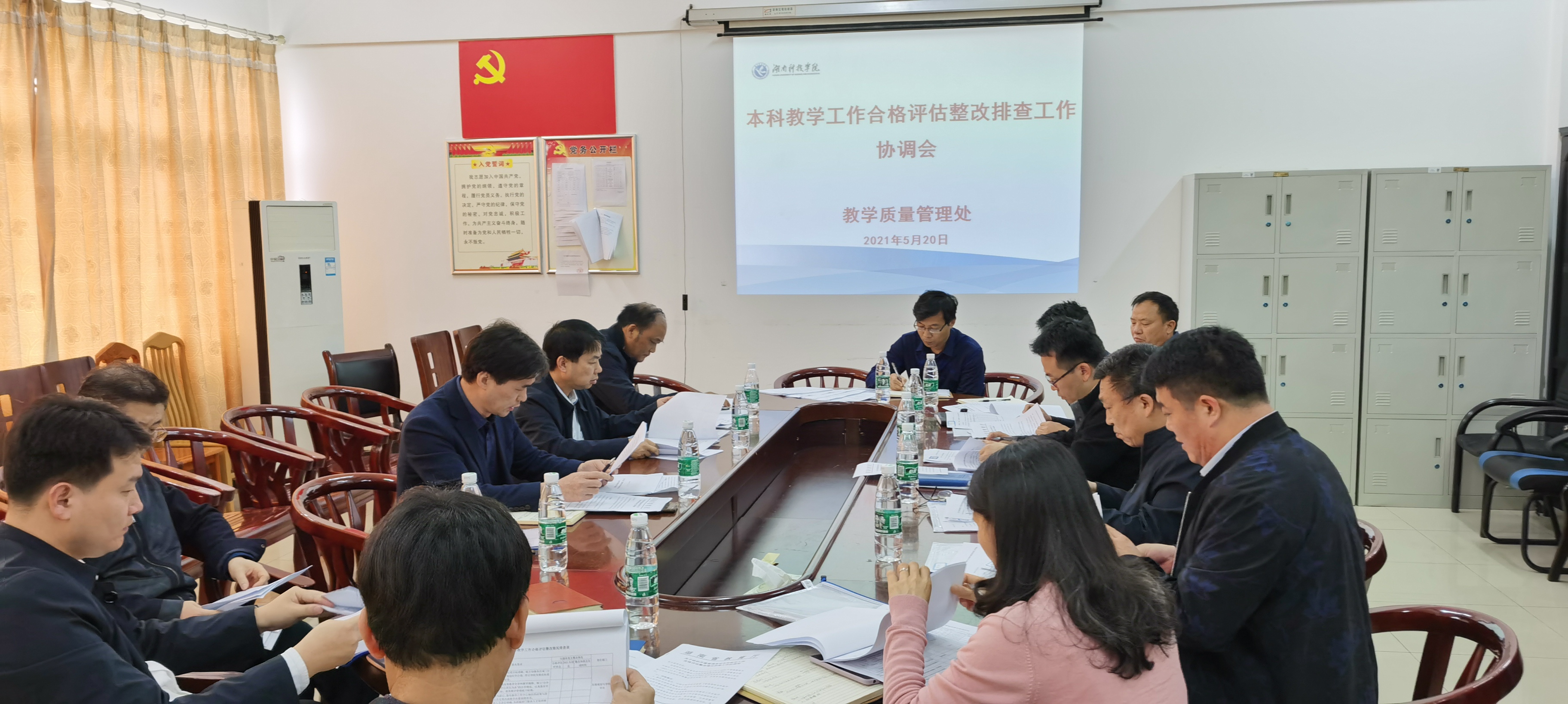 本网讯 5月20日下午,为贯彻落实国务院教育督导委员会办公室和湖南省教育厅工作部署,学校召开本科教学工作合格评估整改情况排查工作协调会。党委委员、副校长李常健出席会议。会议由教学质量管理处处长张俭民主持。