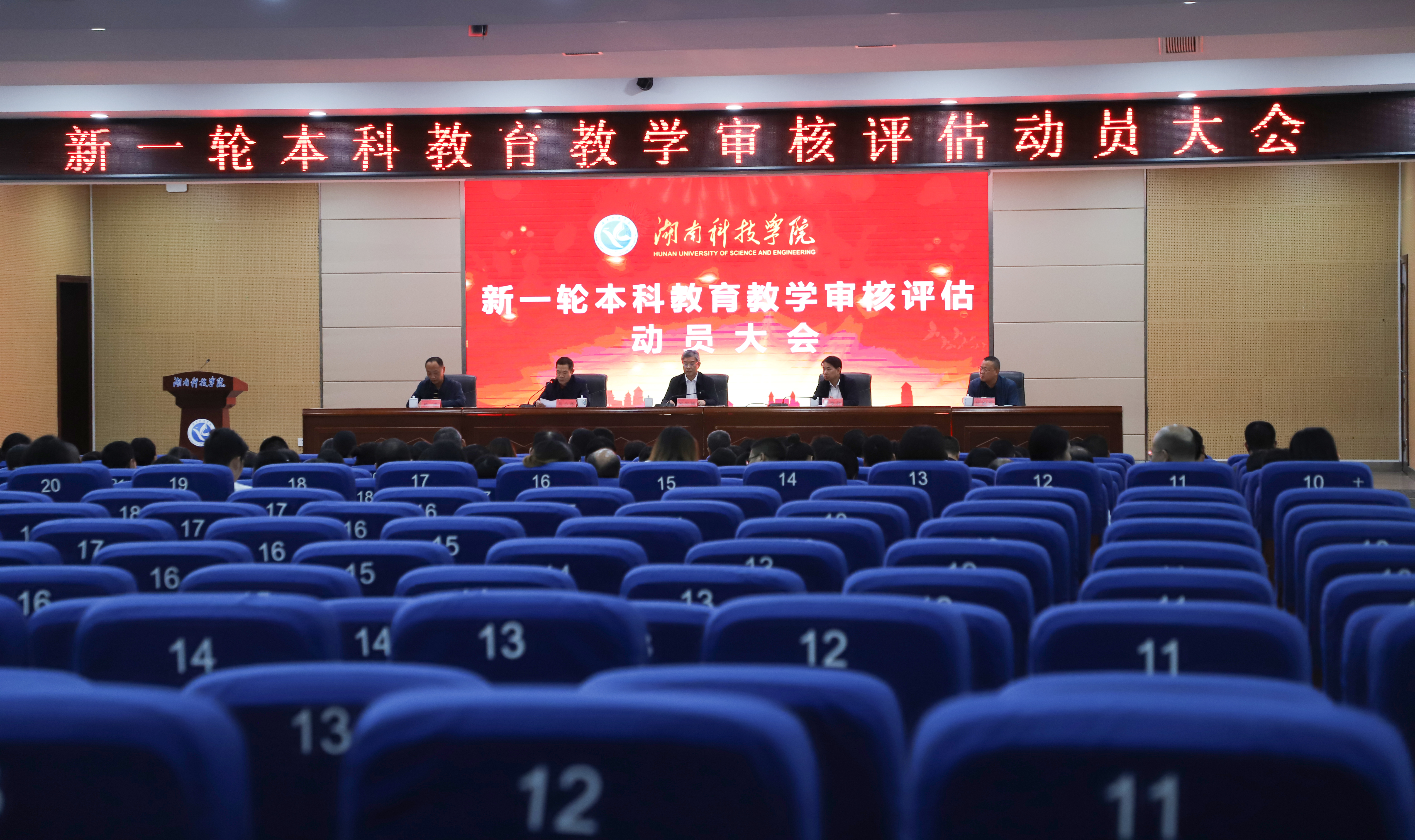 本网讯(记者 刘琴 龙琪玲)10月26日下午,我校新一轮本科教育教学工作审核评估动员大会在潇湘大讲堂举行。党委副书记宋宏福,党委委员、副校长李常健、吴小林、何福林,党委委员、组织部长杨涛出席会议。