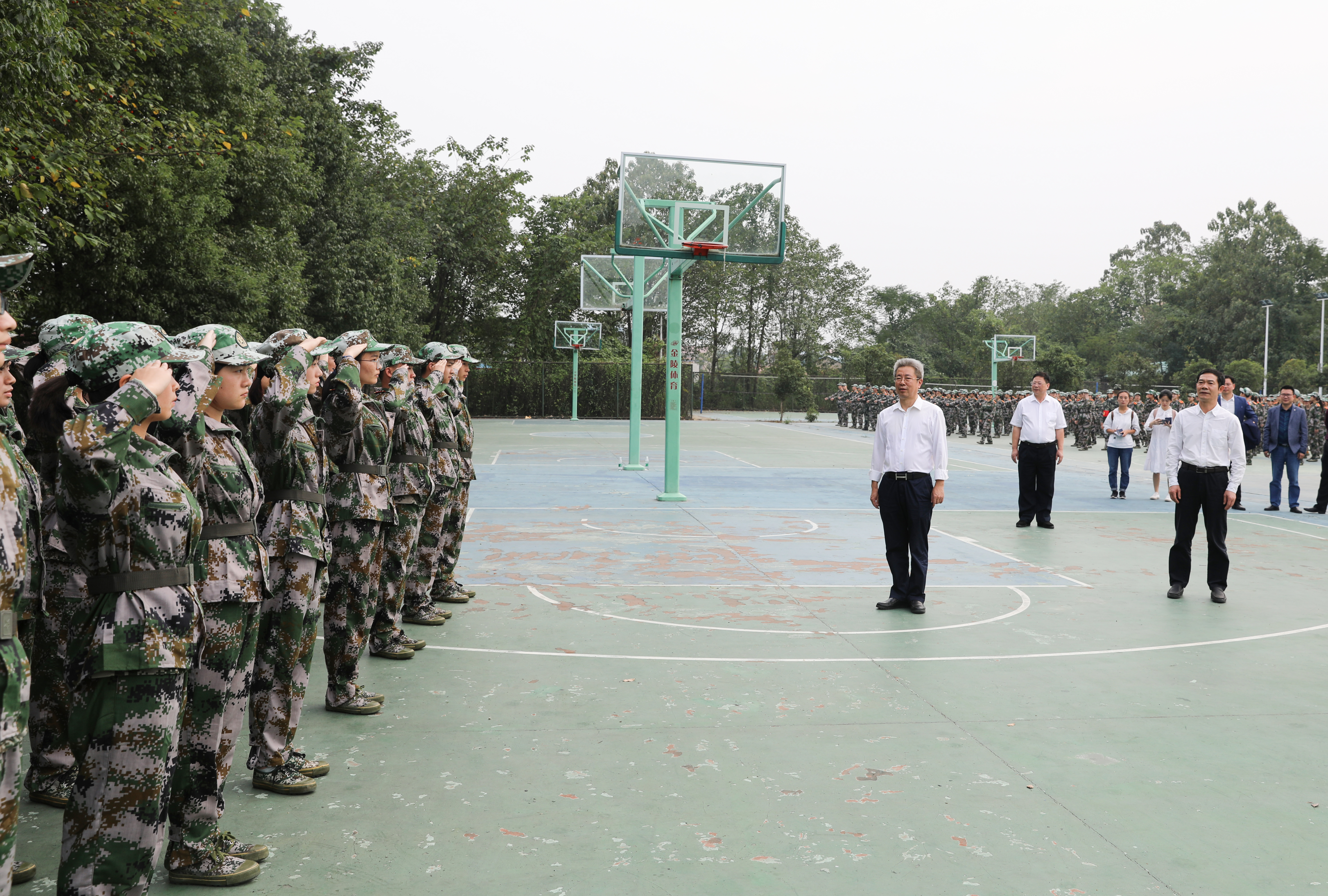 曾宝成向负责人详细了解了军训工作的具体开展情况。他认真观看新生正在进行的队列训练,与参训新生亲切互动。他还走进训练方队,对同学们昂扬向上的精神状态表示高度肯定,对同学们高涨的训练热情和高昂的斗志予以鼓励,希望同学们严格认真对待军训中的各项挑战,进一步磨练意志品质,强化组织纪律,培养团结协作、吃苦耐劳的顽强作风,把军训中的收获带到今后的学习生活中,争做德智体美劳全面发展的时代新人。