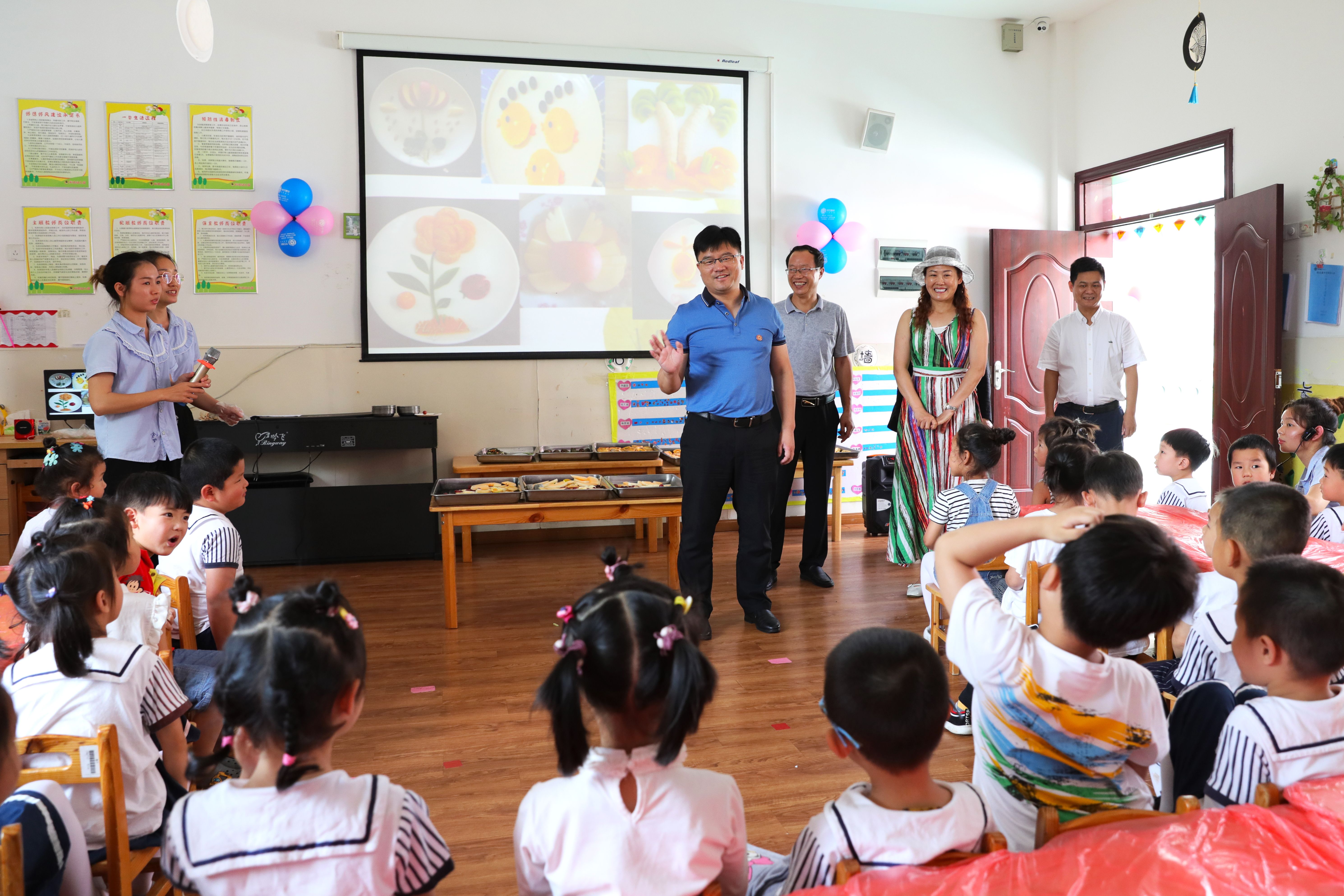 李钢边走边看、边听边问,详细了解幼儿园的教学和管理情况,仔细询问了孩子们的学习生活情况。在中一班教室,孩子们正在欢唱儿歌,欢声笑语不断。李钢走到孩子们中间,微笑着和小朋友们打招呼,俯下身来与他们亲切交流互动,并为小朋友们送上节日礼物。他叮嘱相关负责人要始终把安全摆在首位,抓实孩子们成长期的身心关怀,助力小朋友们幸福快乐地健康成长。