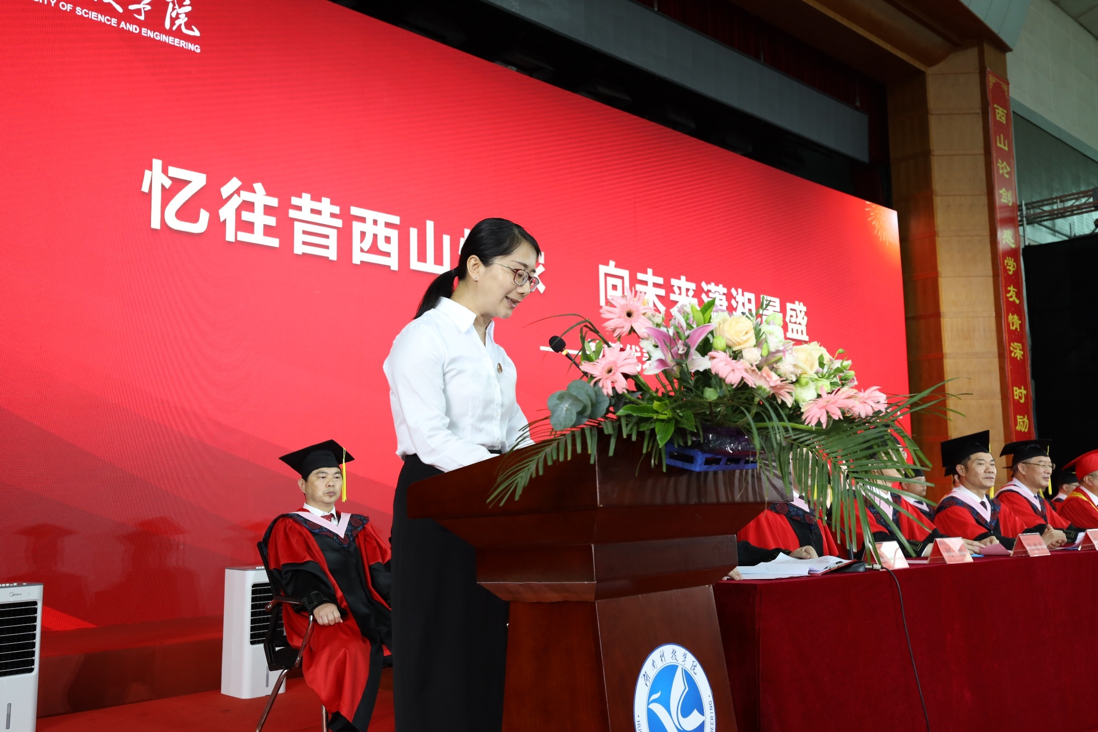 “忆往昔西山情浓正当时,向未来潇湘景盛定有期!”理学院教师黄燕平代表全体教师表达了对毕业生的不舍与美好祝愿,并殷切叮嘱毕业生要继续保持敢闯敢拼、不屈不挠的精神,脚踏实地、勇毅前行、敢于奉献。