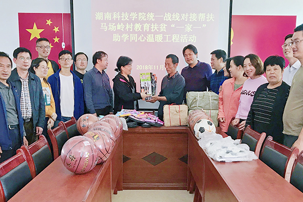 本网讯 11月1日,学校党委统战部组织民主党派、统战团体对接学校扶贫点,赴新田县枧头镇马场岭村开展“一家一”助学·同心温暖工程和“以购代捐”扶贫活动,各民主党派、统战团体积极派员参加。