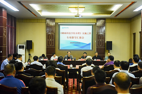 在10月8日召开的汇报会上,督导组听取了校长曾宝成关于《8868官方网站章程》实施工作情况的汇报,会议由党委副书记唐艳明主持。刘湘溶对本次督导的意义、要求、任务等作了说明。本次专项督导内容为章程实施的组织领导情况、本校章程内容掌握程度与章程实施满意情况、章程主要规定落实及配套制度建设情况等。