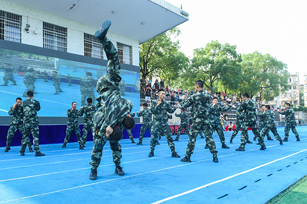 典礼在庄严的国歌声中拉开序幕。军训教官队列表演、优秀连队队列展示及警体拳表演赢得现场阵阵掌声。