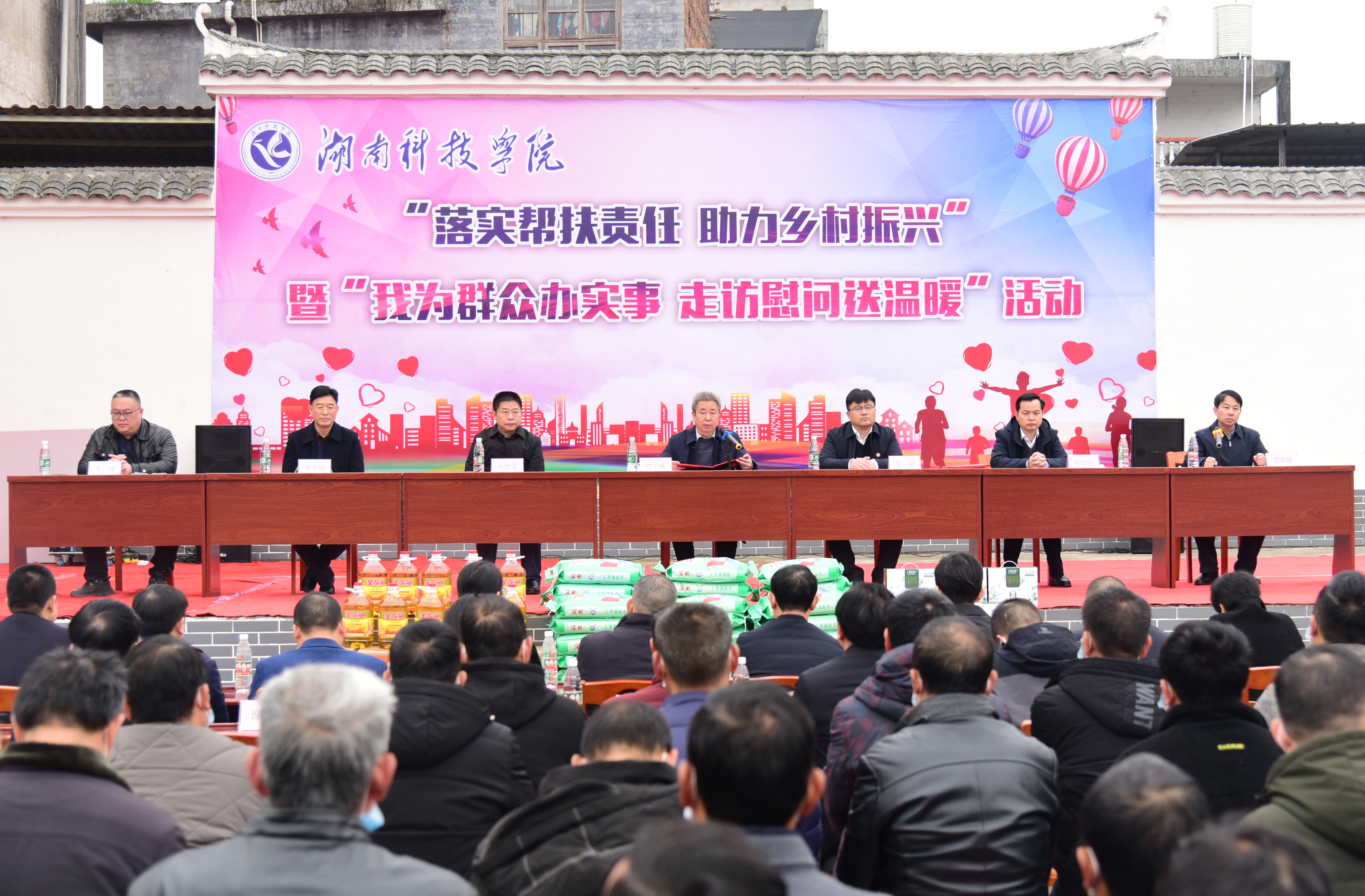 本网讯 为认真贯彻落实习近平总书记关于“三农”工作的重要指示精神,扎实推进邑口村实施乡村振兴战略行动各项部署,1月12日,党委书记曾宝成,党委副书记、校长李钢,校领导宋宏福、李常健、吴小林、何福林、陈灿军、郑银芳、何海到江永县开展“落实帮扶责任,助力乡村振兴暨我为群众办实事,走访送温暖”活动。江永县委书记唐德荣,县委副书记、县长何德波,县委副书记李林,县委常委、组织部长李勇,副县长陈小明出席活动。