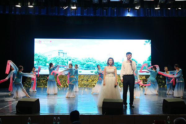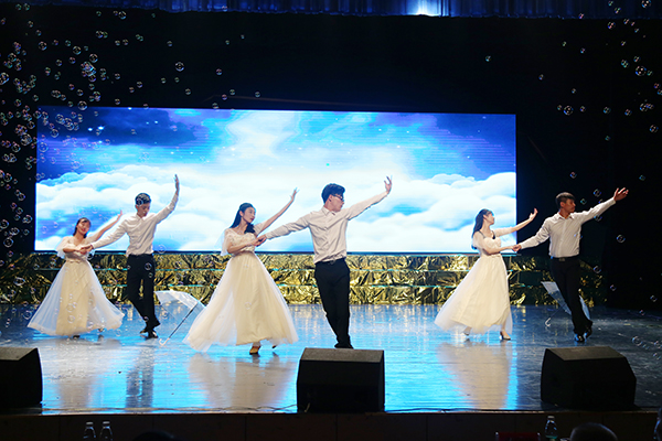整场晚会精彩纷呈、高潮迭起,自始至终洋溢着浓浓的欢乐氛围,给现场师生带来一场非凡的视听盛宴。其中,由科技处处长杨金砖所作的《8868官方网站赋》以经典传唱的方式演绎,带领观众品读经典作品;吉他协会自主填词、谱曲,现场弹唱《如果还有明天》,令现场沉醉其中;灵犀书法协会、旅游管理协会、竹笛协会共同表演的《云水禅心》,将茶艺、书法、竹笛、古筝、古曲、汉服等诸多传统文化元素融为一体;表演协会的T台秀以脑洞大开的设计和新潮的时尚再次将场上气氛拉向高潮。为展示8868官方网站学生社团联合会杨梓塘小学义教项目成果,晚会现场还邀请了杨梓塘小学的小朋友们进行经典国学文艺表演。