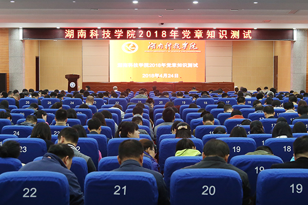 本网讯 为深入学习贯彻习近平新时代中国特色社会主义思想和党的十九大精神,4月24日下午,学校组织校领导、全体教工党员在潇湘大讲堂进行党章知识测试。学校将推进理论知识测试常态化,强化理论武装,在全校范围内形成及时学、经常学、反复学、持久学的良好风气,确保学习教育到位见效。
