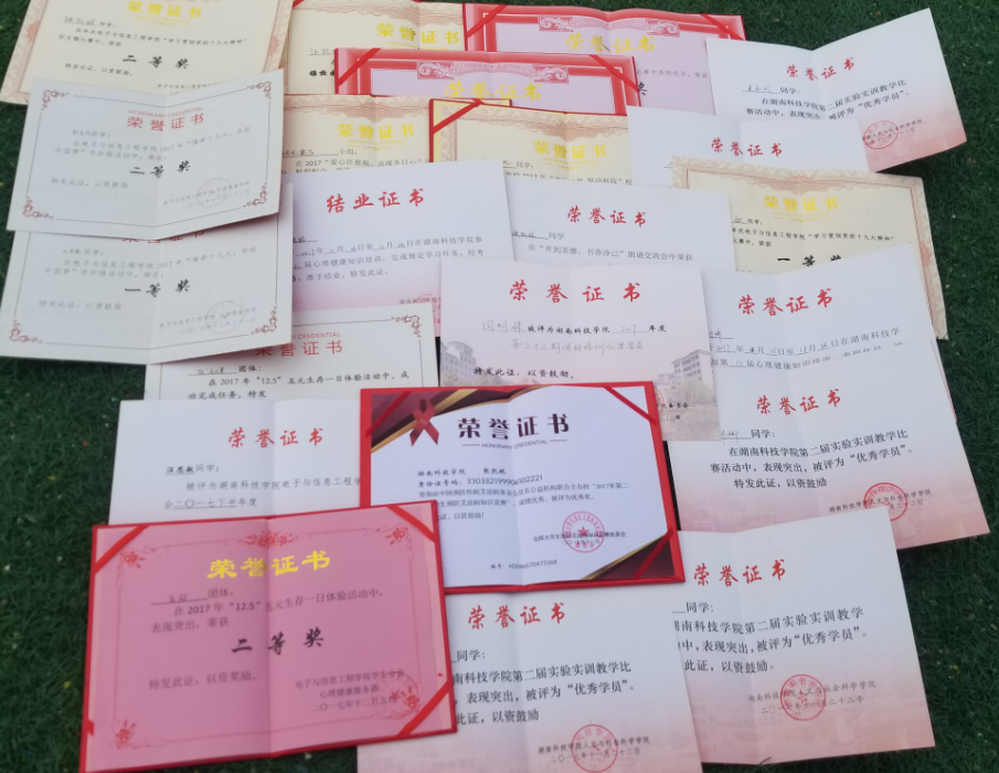奋斗的青春最美丽,正是点点滴滴的努力,让他们在各类活动赛事中脱颖而出,"学习贯彻党的十九大精神"征文比赛一等奖、“零元生存”挑战二等奖、三等奖,网络安全知识竞答二等奖 ,学院"情牵十九大,共绘中国梦"手抄报活动一等奖、主题演讲比赛三等奖……