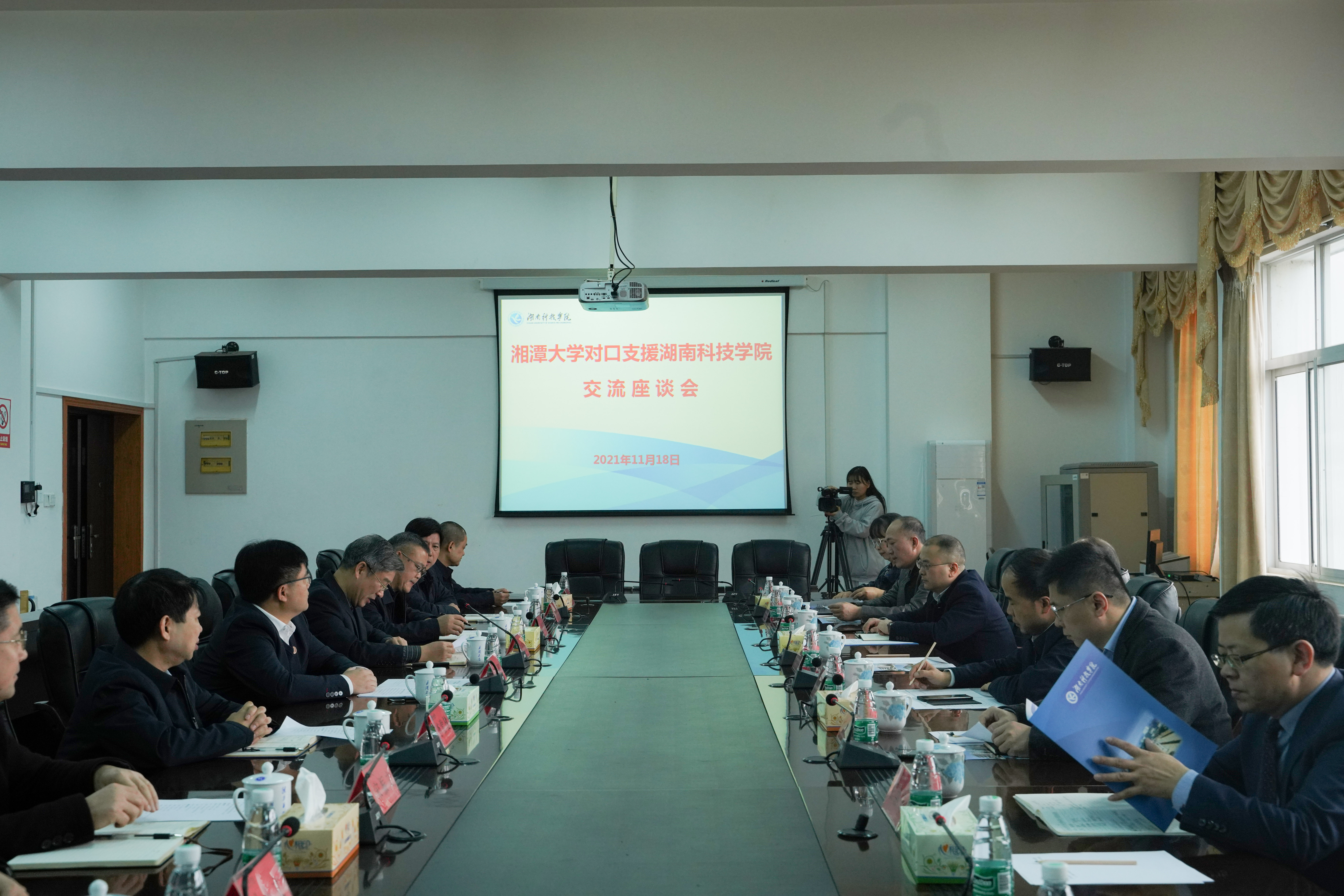 本网讯 为进一步加强两校间合作交流,切实落实《湘潭大学对口支援8868官方网站合作协议》,11月18日上午,湘潭大学校长李伯超、副校长盛明科带队来我校开展对口支援活动。我校校长李钢,党委副书记宋宏福,副校长李常健、何福林及有关职能部门负责人出席座谈会。会议由宋宏福主持。