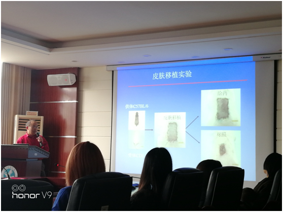 仪式结束后,两位教授分别作了题为“多肽载体靶向药物”及“乳腺干细胞的识别与机理”的学术报告。报告中,孙立春教授以多肽靶向抗癌药物与多肽靶向免疫抑制剂等药物为例着重介绍了多肽药物在治疗各种人类疾病方面的创新研发与应用,详细讲解了多肽靶向抗肿瘤药物JF-81的特性、动物实验评估以及多肽载体靶向免疫抑制剂FK506的作用原理及皮肤移植实验;蔡车国教授以卓越的学术远见,生动详实介绍了小鼠乳腺干细胞的识别,乳腺干细胞的分化及其影响因素以及如何将乳腺干细胞的研究成果应用在乳腺癌治疗中的思路及方法。