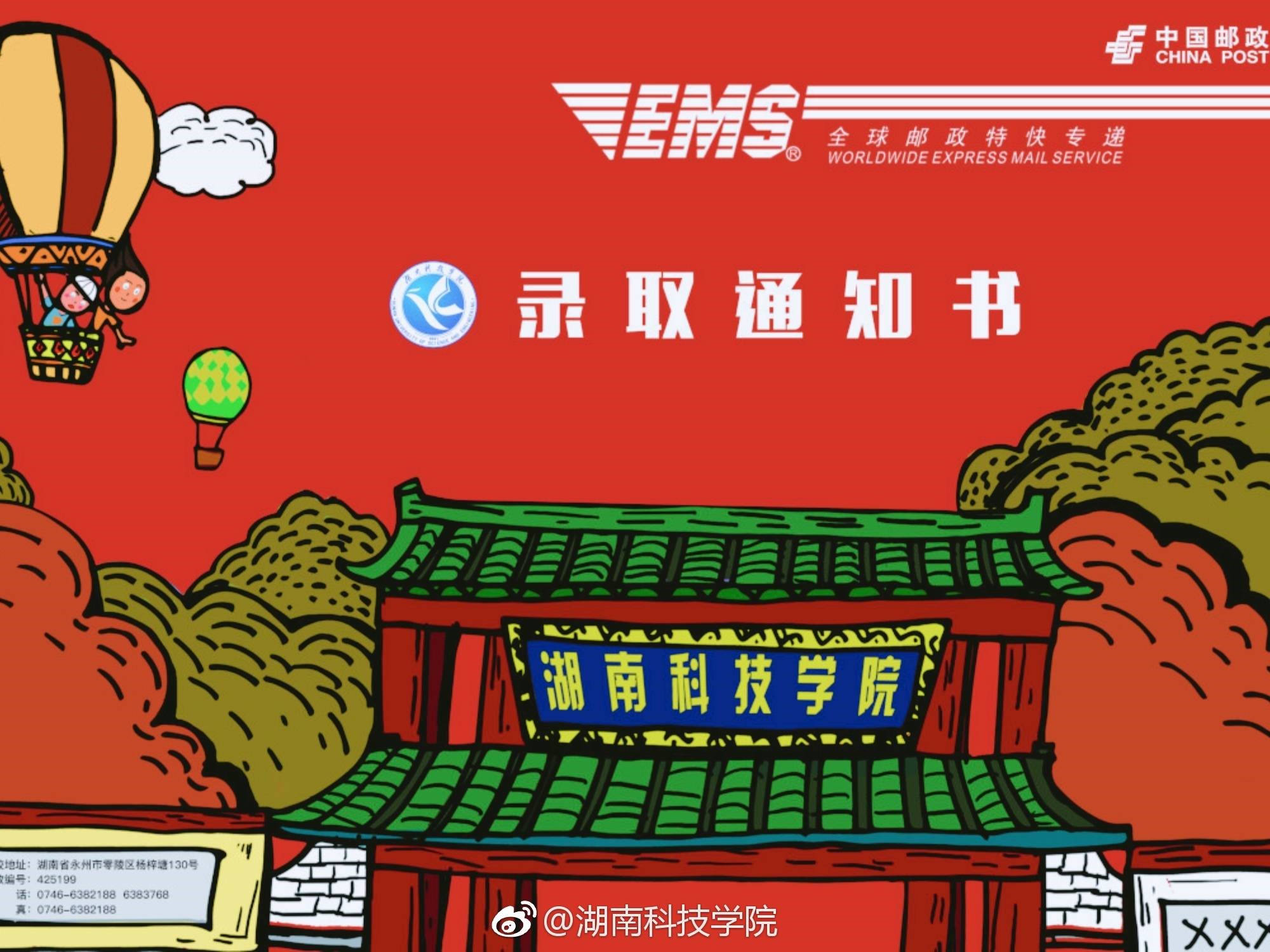 随着我校2017年招生录取工作的圆满结束,今年的录取通知书已经陆续抵达大一新生手中。今年我校的录取通知书一改往年严谨规整的风格,将录取通知书卡通化。EMS封面构图简约,主题鲜明,大方优雅,以我校东大门为被摄主体,彰显了我校对八方学子的热烈欢迎。录取通知书的封面以象征着祝福与活力的红色为底色,既代表着我校对2017级新生数载耕耘喜获丰收的热烈祝贺,又昭示着新生要以热情奔放的姿态度过这充满活力的大学四年。