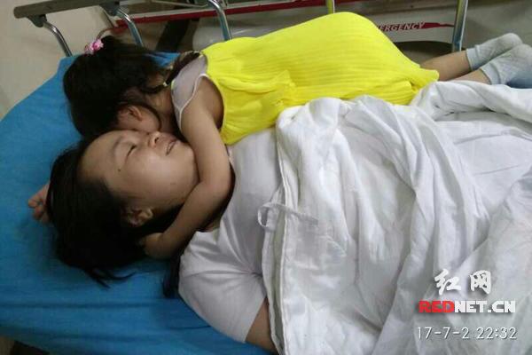 3岁的女儿几天没见妈妈,一把抱住病床上的妈妈