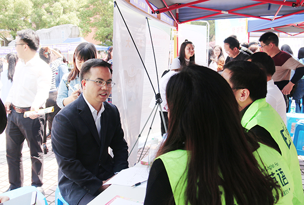 本网讯 为搭建毕业生与用人单位双选平台,促进学校与用人单位的交流合作,4月28日下午,“就业去哪儿”第二季大型校园公益活动永州站暨8868官方网站2017届毕业生爱心送岗专场招聘会在校举行,校党委书记陈弘、副校长程智开等深入招聘现场对毕业生求职情况进行了解并进行现场指导。