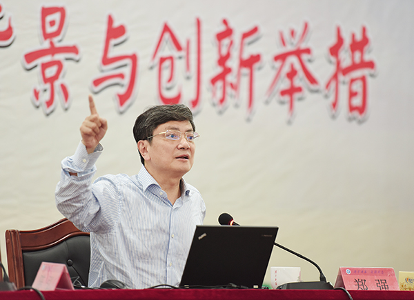 郑强指出,要清醒认识新形势、全力寻求新突破,以习近平总书记提出的“办好中国的世界一流大学,必须有中国特色,扎根中国大地办大学” 系列重要讲话精神为指引,通过“建强培特”,针对地方特色办大学。报告最后,郑强就当今大学生思政教育热点教育问题分享了他的观点,他深入分析了我国大学生集中体现出的一些迷茫现状,指出教育要“讲理明道 触及心灵”,培养出人格健全、品行高尚、体魄强健、学识广博,有远大理想之才。此外,郑强还就专业教育与通识教育的辩证关系等问题作了详细阐述。他总结出高校立德树人教育效果水平评估的标准——爱国爱党、人生理想、成长成才、就业创业。