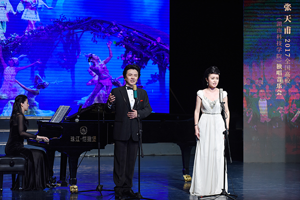 《绒花》《在水一方》《茉莉花》,带有浓郁中国风的歌曲让观众大呼过瘾;《圣母颂》《请别忘记我》《热恋中的士兵》《女人善变》《军中女郎》等几首外国经典艺术歌曲、难度非常大的歌剧咏叹调让观众如沐春风,高音C是所有男高音都畏惧的顶峰,然而今夜张天甫完美的唱出了高质量的十个高音C,令所有观众惊叹;《爱在中国》《格拉纳达》《饮酒歌》,压轴歌曲叫人心潮澎湃,无比动容。音乐会上,20首经典之作轮番上演,好戏连连。莫大尼、龙湘菡、陈婉云等我校优秀声乐教师组成的嘉宾团队倾情助阵,更是为音乐会锦上添花。