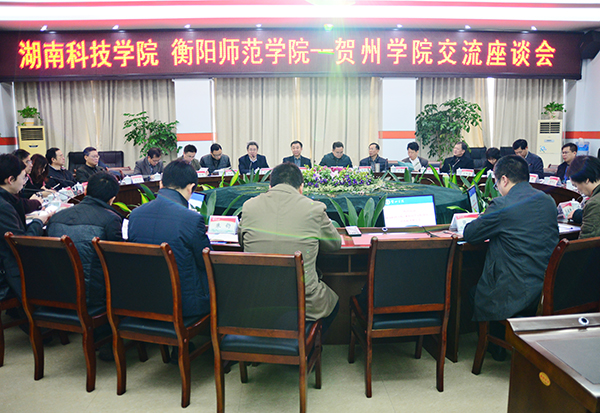 曾宝成对贺州学院的热情接待和传经送宝表示感谢。他指出,近年来,我校积极围绕学校转型发展、特色发展做了许多工作。目前,学校立足永州、根植永州,本着为地方经济社会发展服务的宗旨,主动与地方对接、与企业对接,努力构建适应地方支柱产业、战略性新兴产业发展需求的专业链。在争创“双一流”背景下,不断增强大学生的创新意识、加强对大学生的创新创业能力培养,用创新思维服务地方经济社会的发展。他表示,贺州学院的发展及许多卓有成效的经验做法值得我校学习、借鉴,希望两校加强交流互动,进一步开创各项工作新局面。