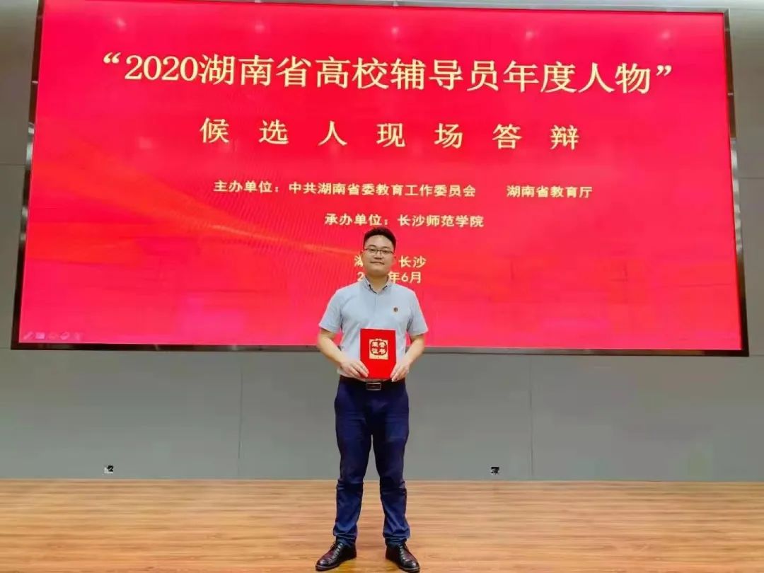 于是,他在工作中全力以赴,在闲暇时,思考自身的价值与意义。不断学习,不断积累,不断提高。工作期间,他先后参加湖南省易班建设高校专题培训班1次、新时代高校思想政治工作文化育人高端论坛1次、参加湖南省·全国高校辅导员网络培训示范班1次。多次参加学校辅导员专题培训和教师队伍专题网络培训,参与完成湖南省大学生思想道德素质提升工程优秀建设项目1项,主持省教育厅课题1项、校级课题2项、参与校级课题5项。2018年4月,参与的“‘心晴’特色成长辅导室”被评为湖南省大学生思想道德素质提升工程优秀建设项目;2019年11月,获第六届湖南省青年文化艺术节绘画类国画组铜奖;2020年12月,获评8868官方网站疫情防控先进个人、获评“永州市青年岗位能手”;2021年,获评8868官方网站2020年度就业创业工作先进个人、十佳辅导员、2020年度考核优秀、年度嘉奖;获评2020湖南省高校辅导员年度人物。获评首届“最美辅导员”。