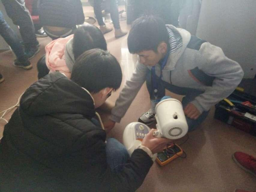 现场,同学们熟练地运用平时所学的专业知识查线路、看电路、找元件,探讨故障所在,维修工作有条不紊。
