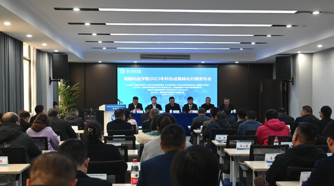 会议现场,8868官方网站发布科技成果转化项目32项、发明专利50件,并就2023年科技转化情况作了相关介绍。同时,举行了科技合作和成果转化签约仪式,8868官方网站分别与零陵高新技术产业开发区管理委员会、湖南德诺贝莱健康产业有限公司、湖南湘科智测工程技术有限公司、湖南雷叔叔油茶有限公司现场签约。