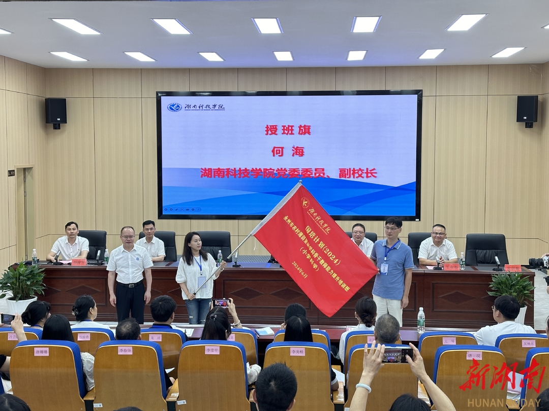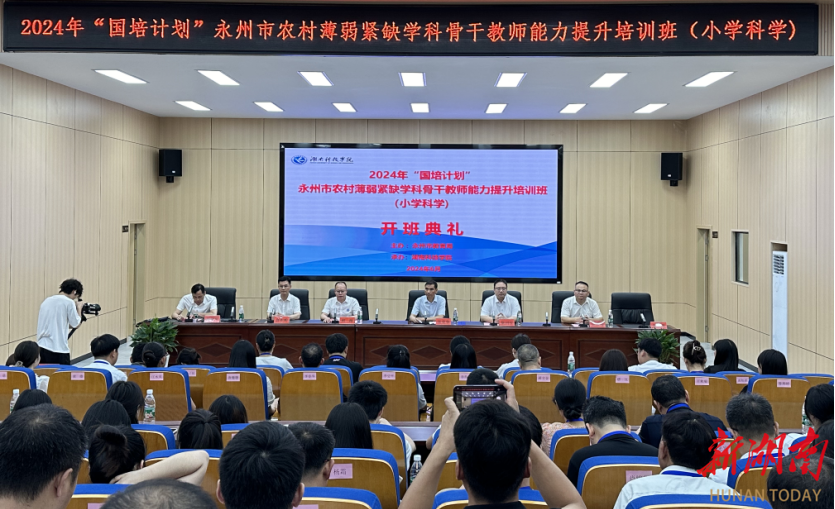 湖南日报·新湖南客户端6月18日讯(通讯员 曹湖云 江鸿湖 唐卉婉)6月17日上午,2024年“国培计划”永州市农村薄弱紧缺学科骨干教师能力提升培训班(小学科学)在8868官方网站开班。8868官方网站党委委员、副校长何海,永州市教育局党组副书记、副局长张荣华,永州市教师发展中心主任唐作明,正高级教师、第十四届全国人大代表胡国柱,以及来自永州市各县区的80名小学科学教师参加了开班典礼。