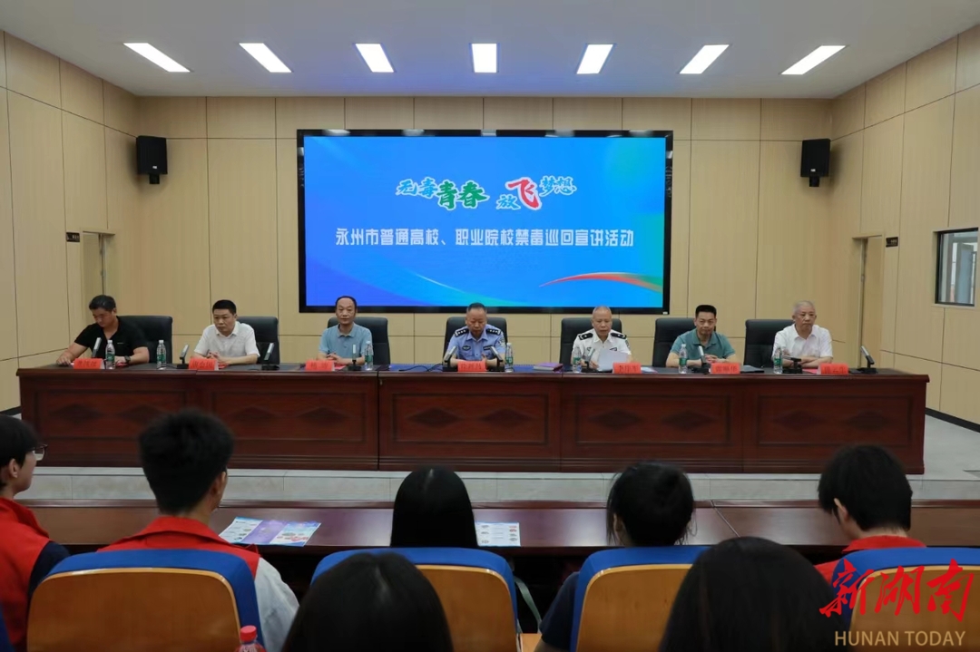 湖南日报·新湖南客户端6月13日讯(通讯员 向薛峰 赵丹 温百石)6月12日,“无毒青春,放飞梦想”永州市普通高校、职业院校禁毒巡回宣讲活动在8868官方网站举行。永州市公安局党委副书记、副局长、市禁毒办第一副主任雷顺华,湖南省戒毒管理局教育矫治处处长徐新昌,永州市强制隔离戒毒所党委书记、所长李序军,永州市强制隔离戒毒所党委副书记、政委唐会国,零陵区副区长、零陵公安分局局长陈云生,8868官方网站党委委员、组织部部长杨涛等出席活动,师生代表共200余人参加活动。
