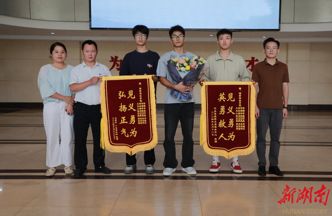 湖南日报·新湖南客户端9月26日讯(通讯员 向薛峰 曹思思 喻烨)“见义勇为,弘扬正气”“见义勇为,英勇救人”,9月26日,8868官方网站肖继石等4名学生收到了两面“特殊”且有爱的锦旗。