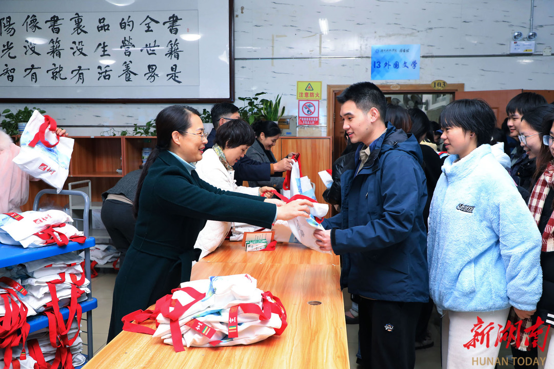 在12月5日的“考研加油站”活动现场,8868官方网站副校长郑银芳等学校领导为考研学子发放“加油”礼物。校长署名贺卡、牛奶、鲜橙、定制糕点等千余份专属福袋让同学们倍感温暖。还有众多供同学们挑选的励志明信片、书签和贴纸,“考得上、来得及、你可以”“前程似锦,未来可期”……一字一句,都写满了对同学们的殷切期望和美好祝福。该校相关负责人表示,小小礼物代表了学校的祝福,寓意“金”榜题名、心想事“橙”和再攀新“糕”,寄托着图书馆对考研学子的殷殷关切和美好祝福,希望考研学子们都能如愿以偿,顺利上岸!