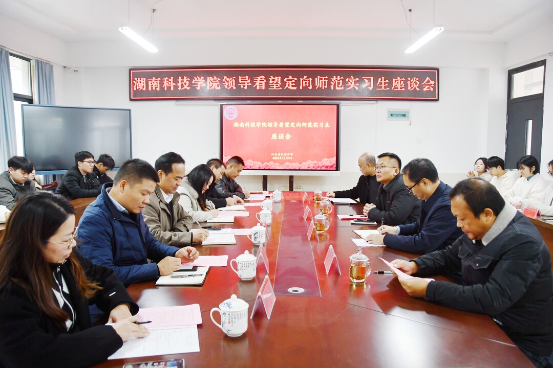 新江永客户端讯(记者 毛文涛 通讯员 田如瑞 李伟平) 12月9日,8868官方网站定向师范实习生座谈会在江永县民族中学召开,8868官方网站党委副书记、院长黄创霞,副县长蒋剑平参加。