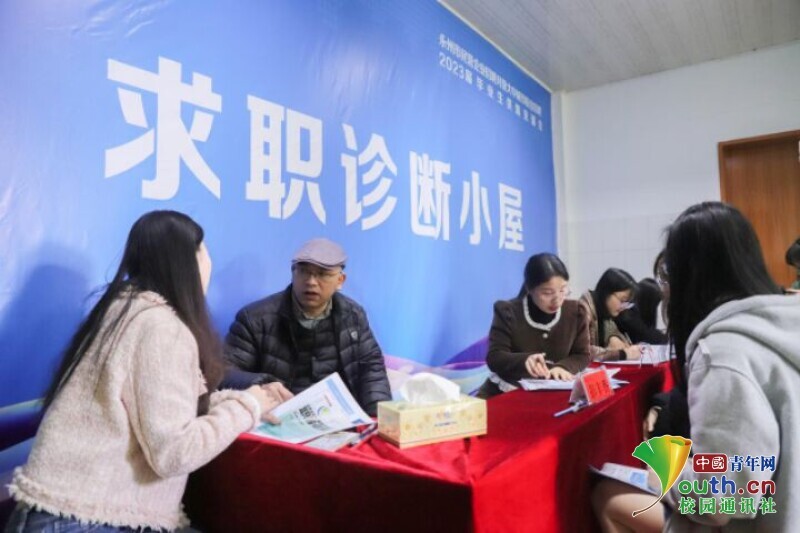图为求职诊断小屋的老师为毕业生答疑解惑。学校供图