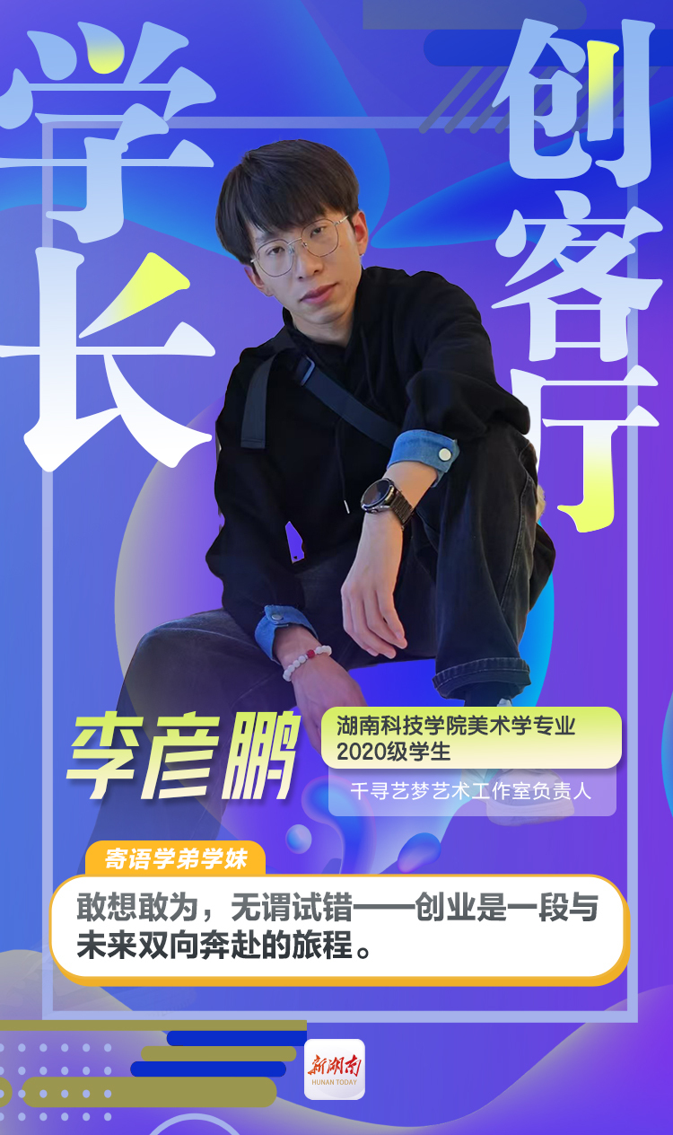 李彦鹏,8868官方网站美术学专业2020级学生,千寻艺梦艺术工作室负责人,乡村美育践行者、非遗文创探索者、墙绘“破圈”青年。2022年,正式成立“千寻艺梦艺术工作室”,以墙绘为切口进军商业领域,累计完成5000平方米墙绘,服务甘肃省定西市新坪村、永州市零陵区永荷村等5个乡村、7所学校,并开发非遗文创产品,助力传统技艺焕新。如今,工作室年营收突破30万元,成为乡村振兴与艺术融合的标杆案例。