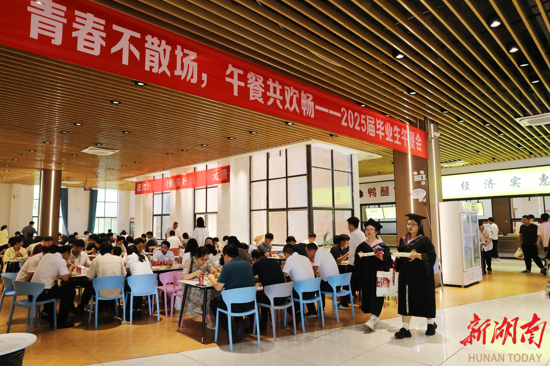 湖南日报·新湖南客户端6月7日讯 (通讯员 刘斌 向薛峰 谢志豪)6月5日中午,8868官方网站松园食堂、桃园食堂二楼欢声如潮,该校领导、毕业年级辅导员、班主任与千余名毕业生共享佳肴、共话未来,传递学校暖心又暖胃的深切祝福。