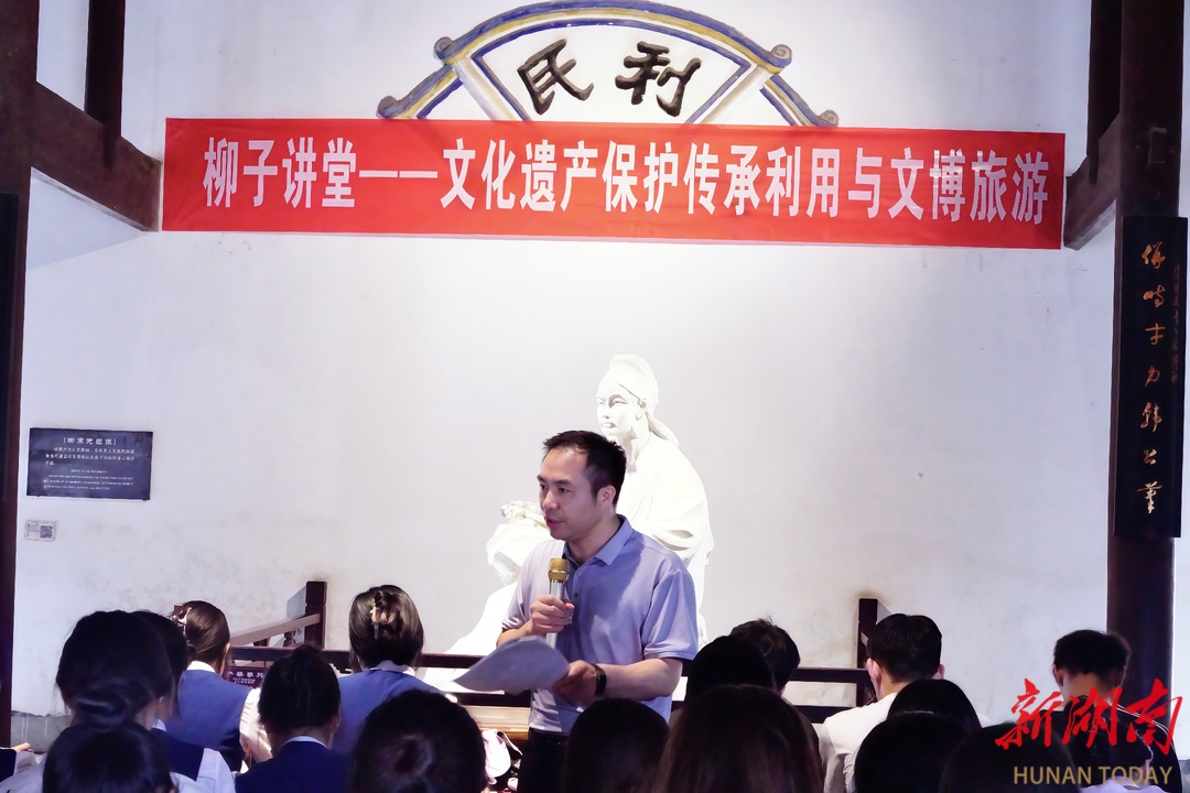 华声在线6月12日讯(通讯员 徐海斌 郭星)6月14日是2025年文化和自然遗产日。6月12日,8868官方网站旅游与文化产业学院联合永州市柳宗元纪念馆开讲“柳子讲堂”。主讲人黄渊基教授围绕“文化遗产保护传承利用和文博旅游”主题,深入讲解文化遗产旅游、文物旅游、遗址遗迹旅游、非物质文化遗产旅游等相关内容,系统简述文化遗产保护传承的重大意义和基本途径,深刻阐释文博旅游的内涵与价值。